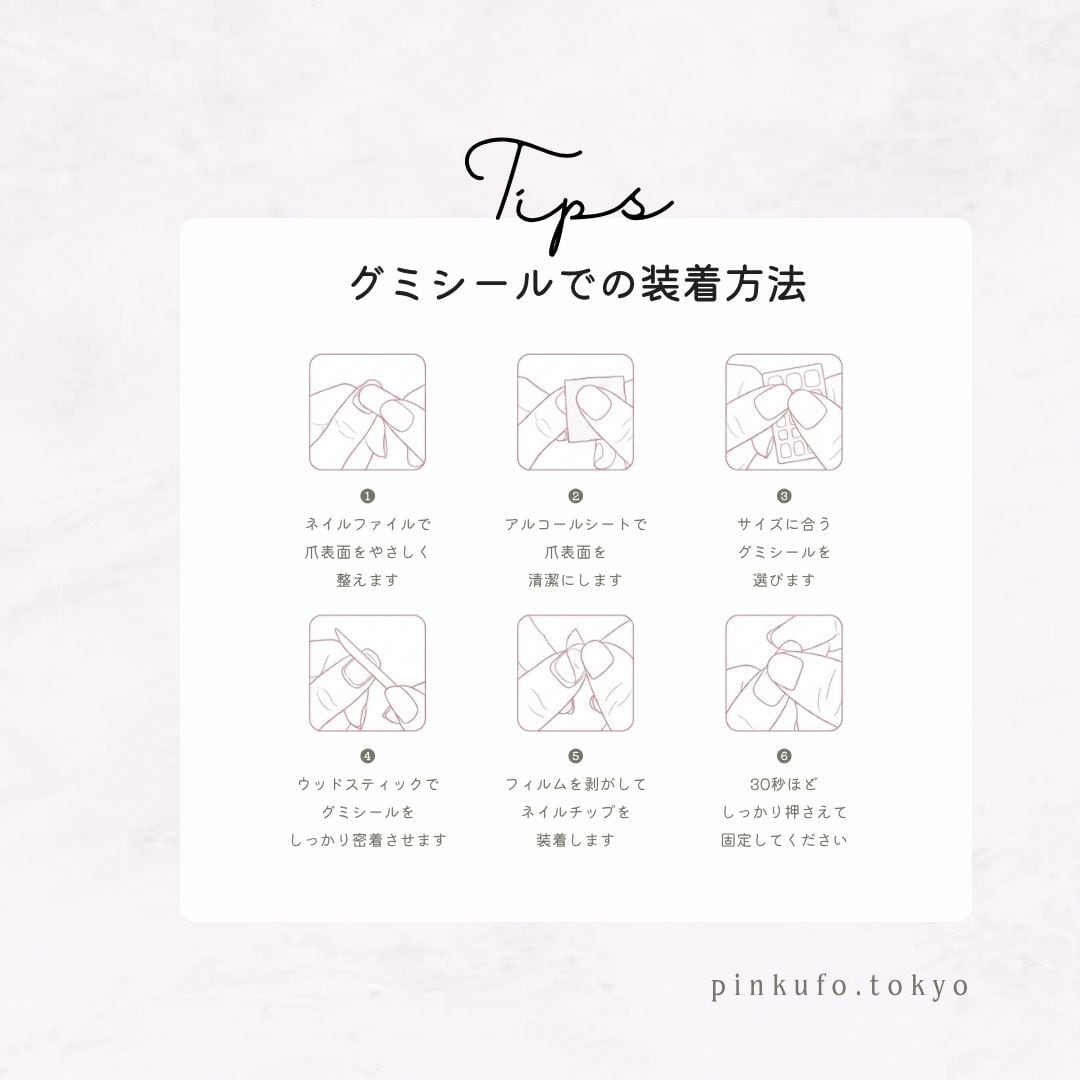 粘着グミ付きのネイル装着用ツールキットを1点無料でお付けします。