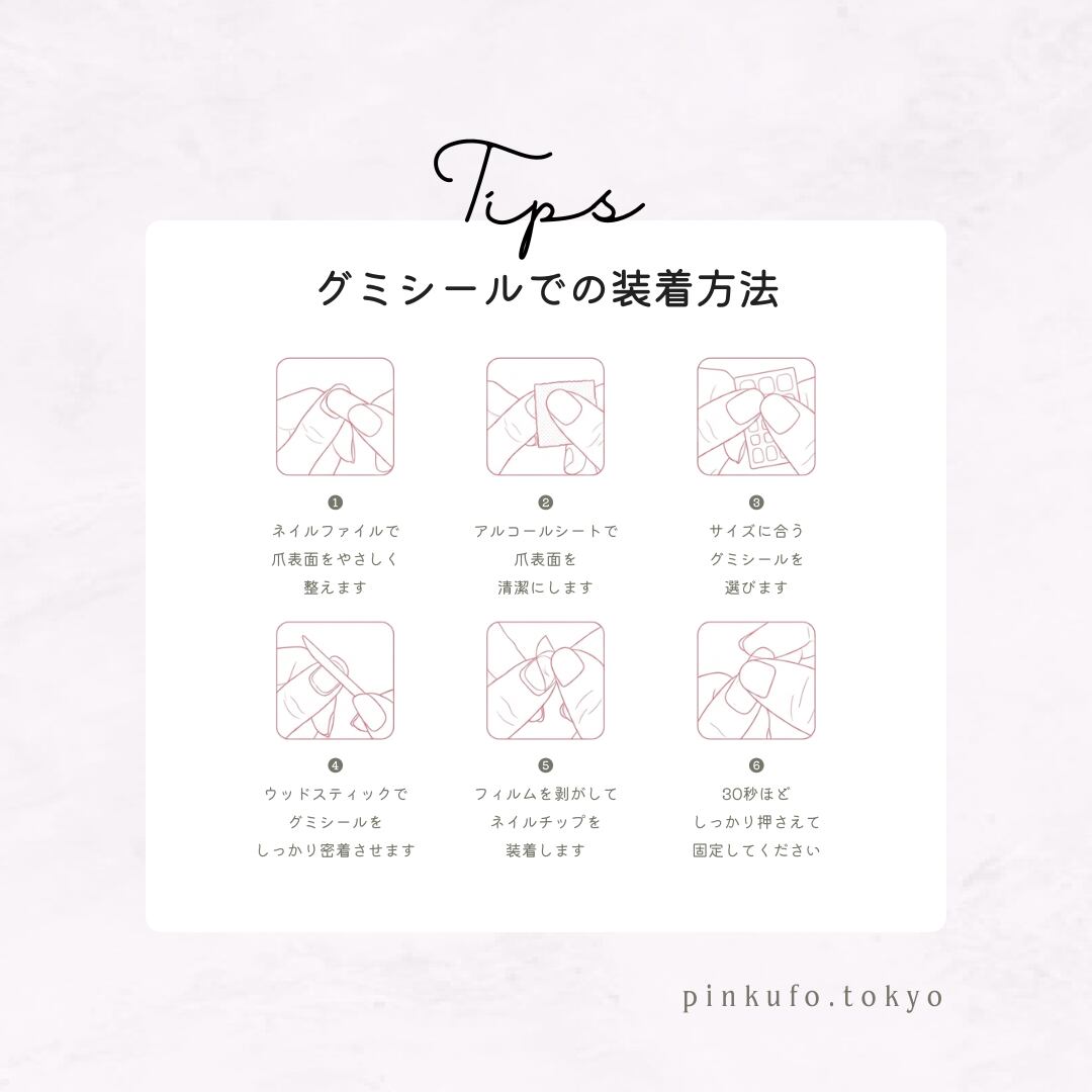 粘着グミ付きのネイル装着用ツールキットを1点無料でお付けします。